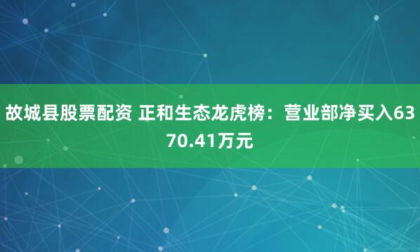 正和生态(605069)今日下跌1.01%,全天换手率38.74%,成交额4.72亿元,振幅14.45%。龙虎榜数据显示,营业部席位合计净买入6370.41万元...